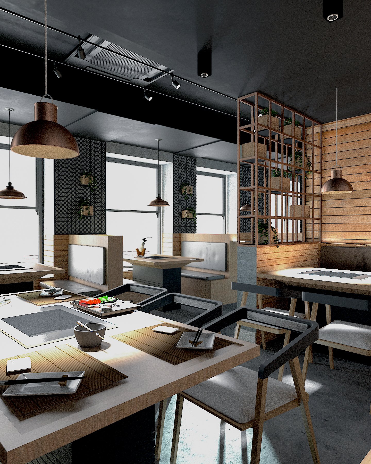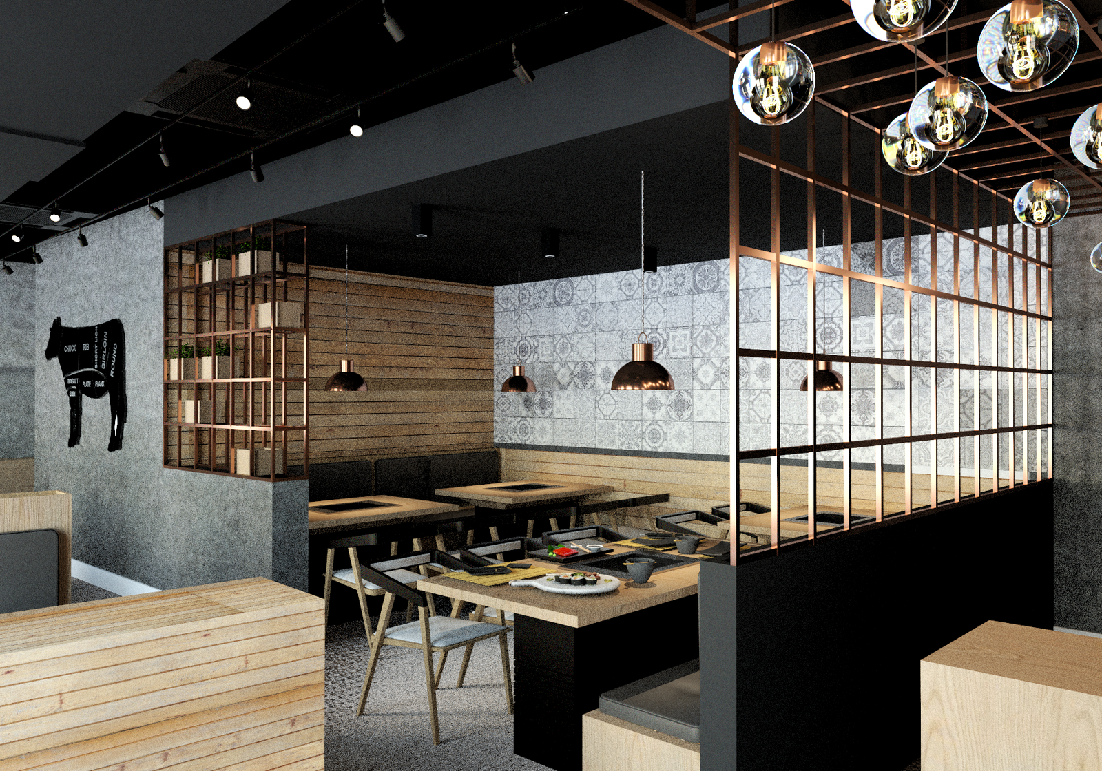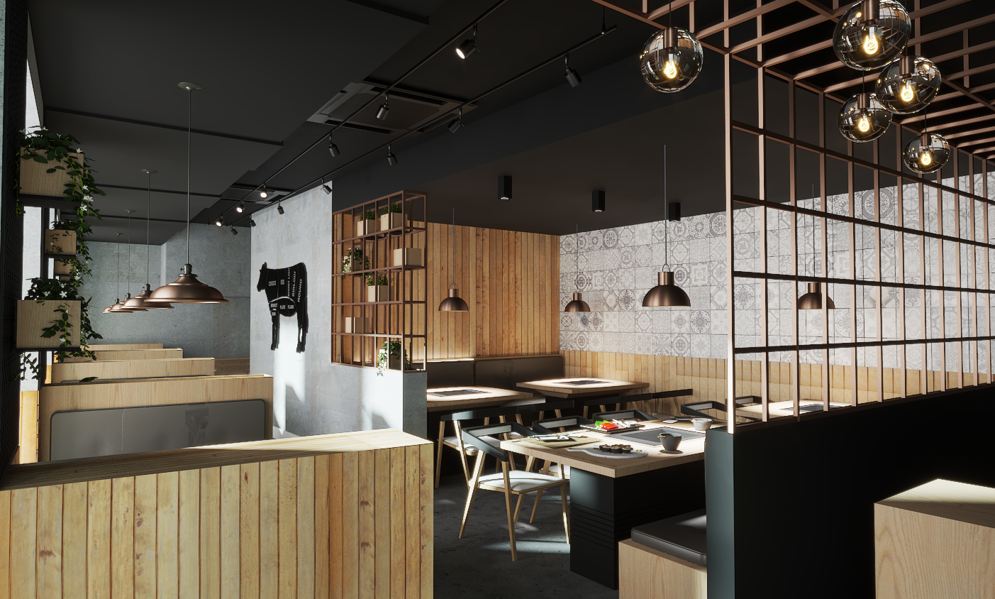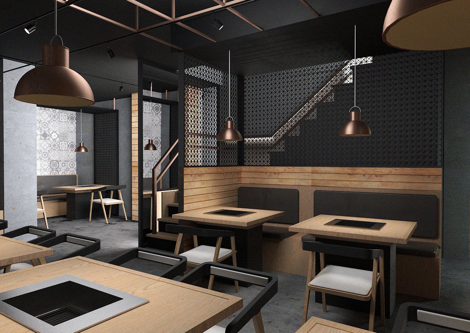 This project required careful planning and precise execution to support the operational demands of a modern Japanese BBQ dining experience. By integrating our expertise in interior design, architecture, and construction, we collaborated closely with the client to deliver a space that balances form and function. The result is a contemporary environment that is both inviting and efficient—combining bold materiality, ambient lighting, and clean architectural lines to enhance the overall customer experience.