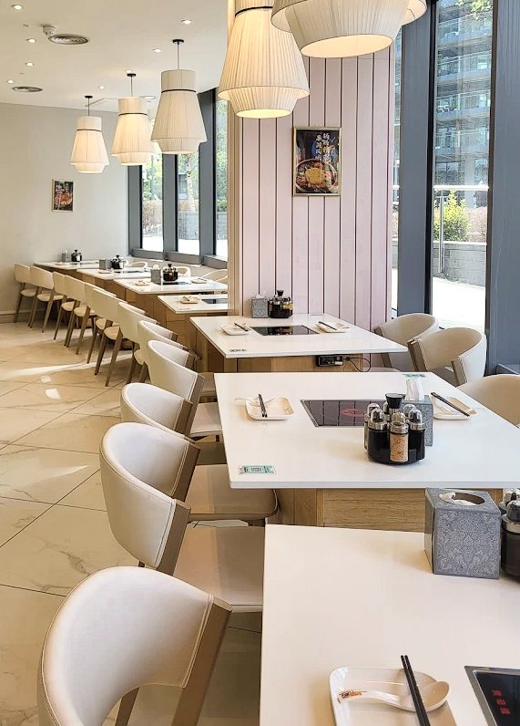 Simmer Huang is a contemporary restaurant fit-out in Canary Wharf, designed to create a bright, elegant, and welcoming dining environment. The project focused on combining clean modern aesthetics with a practical layout that supports a smooth customer experience.